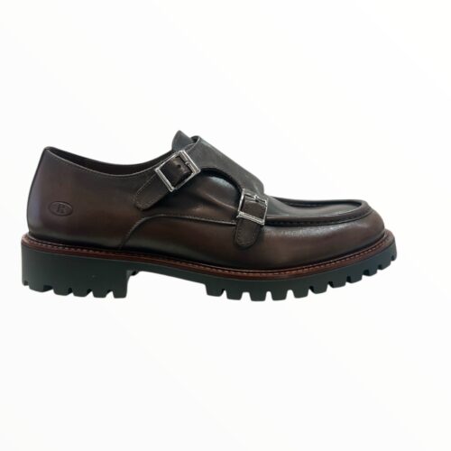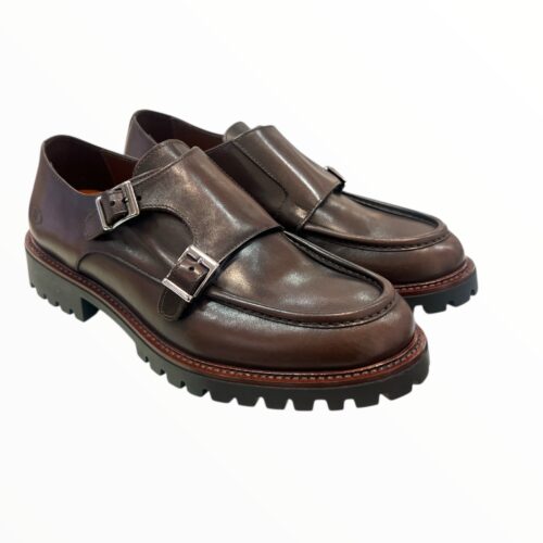 Mocassino in crust vitello cuoio intrecciato fondo cuoio mezza intersuola gomma con tacco spezzato