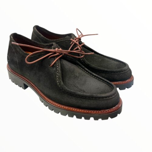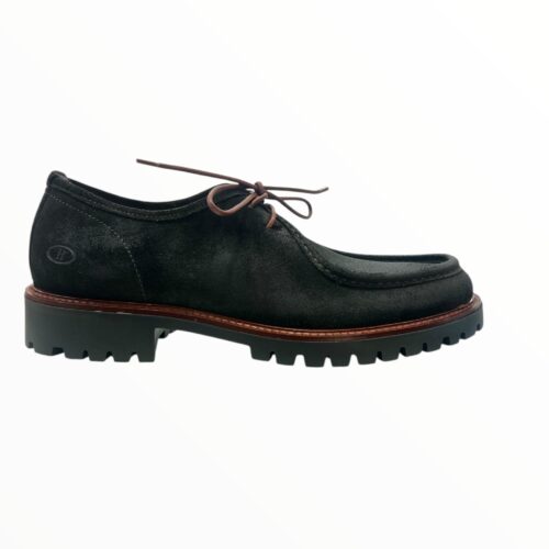 MOCASSINO IN CAMOSCIO VELOUR testa di moro FODERA VITELLO CUOIO MEZZA PIANTINA GOMMA NERO -