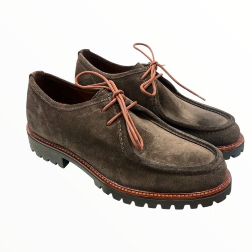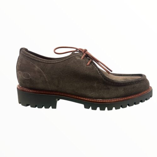 MOCASSINO IN CAMOSCIO VELOUR TAUPE FODERA VITELLO CUOIO MEZZA PIANTINA GOMMA NERO -