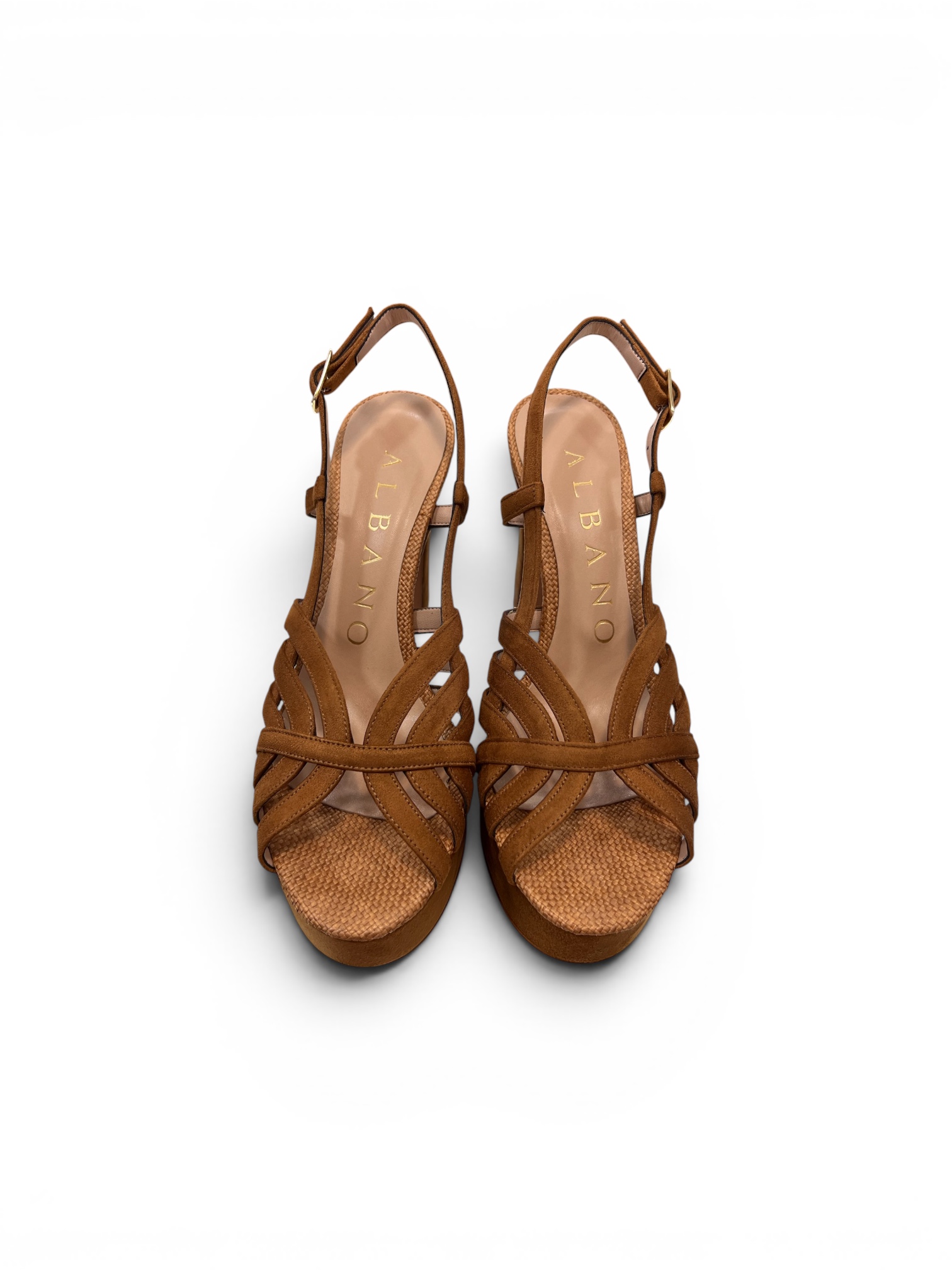 è un sandalo elegante in velour nude , pensato per valorizzare i look più raffinati con uno stile sofisticato. Realizzato 100% Made in Italy, slancia la silhouette con il tacco da 7 cm mentre fibbia oro impreziosisce il design.