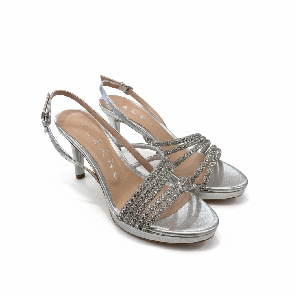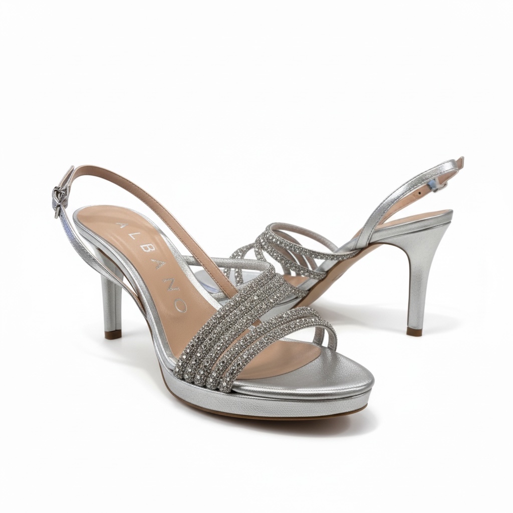 è un sandalo elegante in soft argento , pensato per valorizzare i look più raffinati con uno stile sofisticato. Realizzato 100% Made in Italy, slancia la silhouette con il tacco da 7 cm mentre fibbia oro impreziosisce il design.