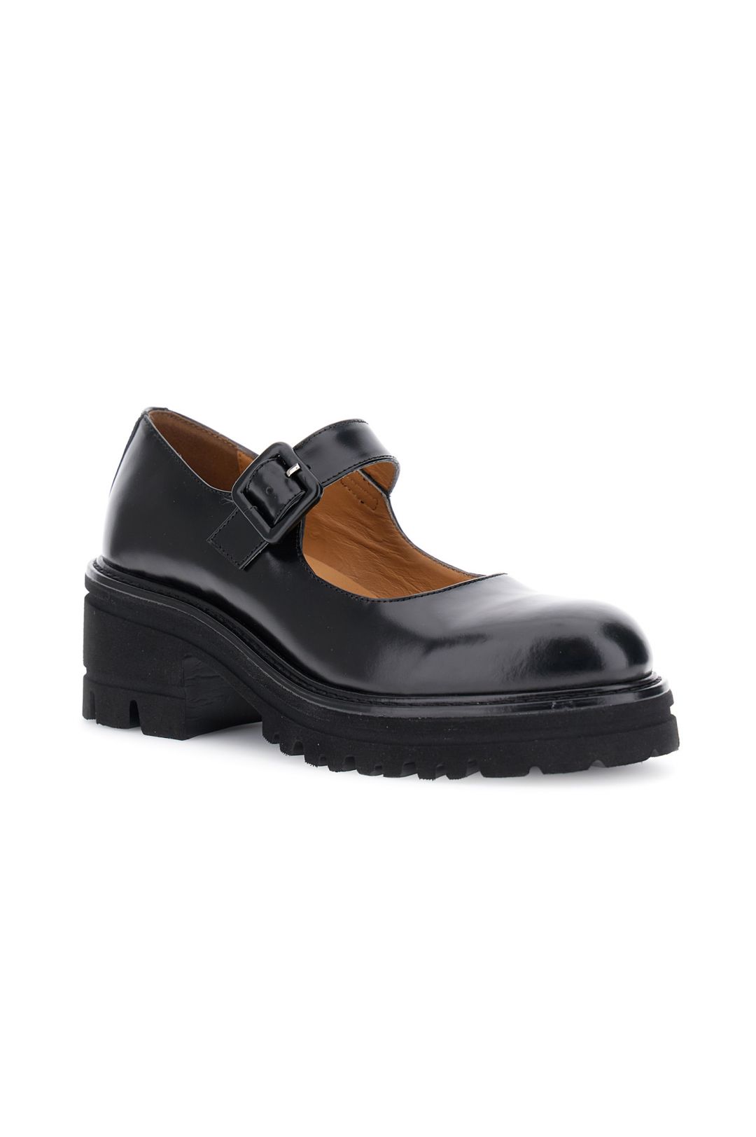 Dรฉcolletรฉ in pelle spazzolata con fibbia. fodera e soletto in pelle per un comfort elevato. fondo carrarmato con plateau da 25 cm e tacco alto 55 cm.. perfette per look grintosi e femminili.