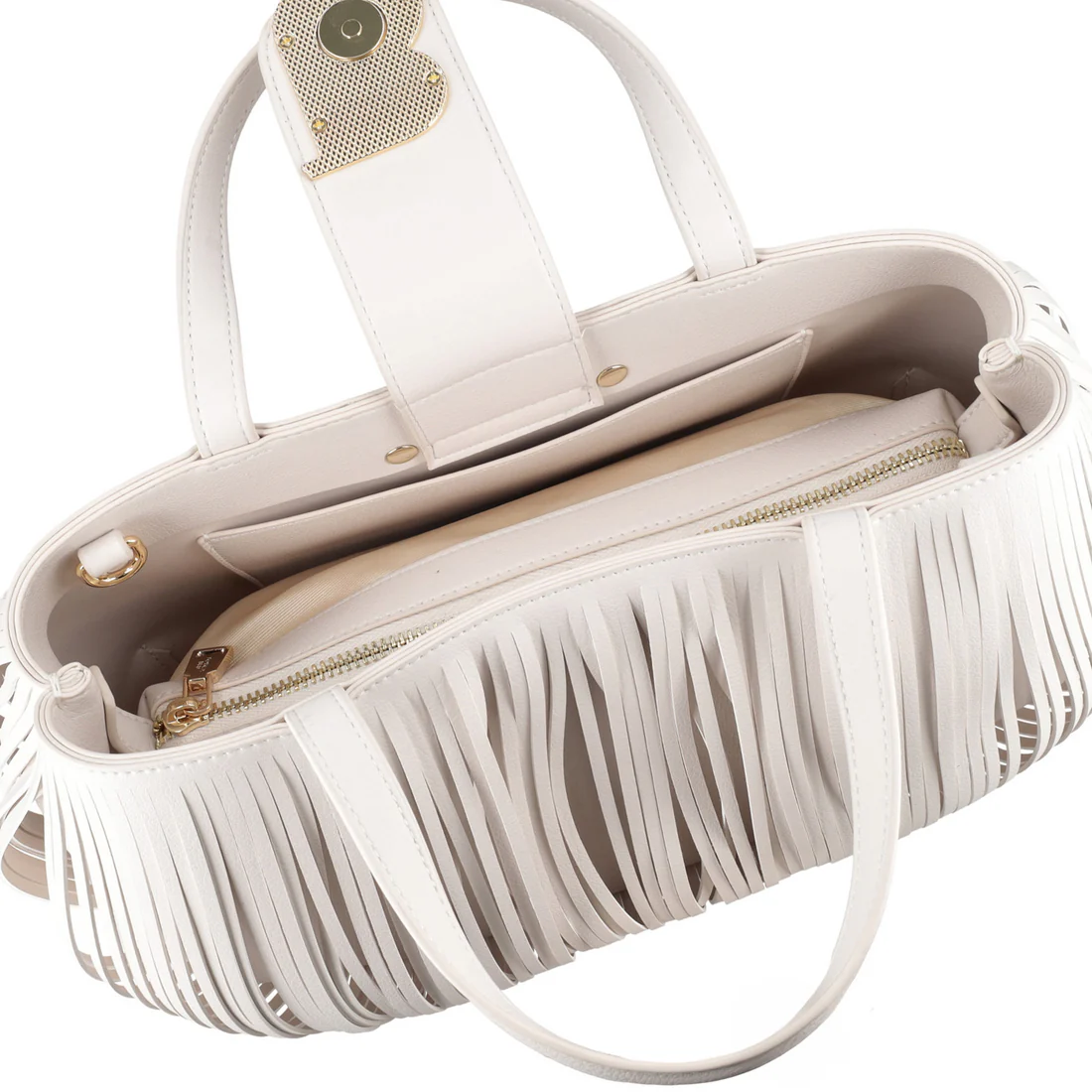 La borsa a mano di Tosca Blu interpreta con eleganza un’estetica contemporanea e sofisticata. Il design intagliato crea un raffinato gioco di pieni e vuoti, donando leggerezza visiva. Declinata in color naturale, è dotata di chiusura con linguetta che assicura praticità. L’interno presenta uno scomparto aperto ed uno con chiusura lampo, per custodire in sicurezza ciò che conta di più. Dotata di manici doppi e tracolla regolabile, questa borsa a mano è un must-have per la donna moderna.